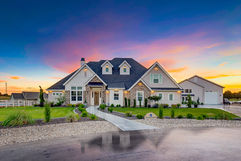 Radiating with the elegance of modern French-country aesthetics, The Atlantic brims with an abundance of natural light that beautifully illuminates its warm tones and textures. The grandeur of 12' entry ceilings is enhanced by captivating trim details and striking lighting fixtures. The kitchen takes center stage as the entertainment hub of the home, boasting exquisite appliances and breathtaking white cabinetry. A hidden room within the residence fulfills every child's dream, featuring a charming playhouse and an exciting slide.